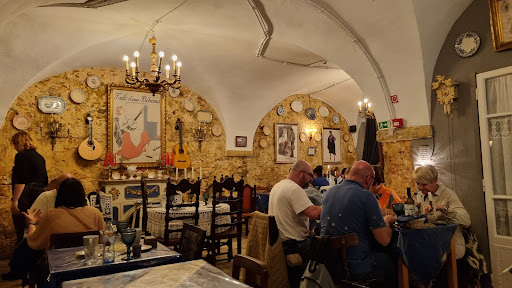 We were looking for a fado experience and an acquaintance of ours recommended the place, so we went there. We were welcomed by a seemingly warm host and sat on the back, next to the kitchen. The place was less than half full. I think everything started with the prices: they were way to high for what was offered. Still, we decided to go through it and get something to drink, a sausage and the veil stew to share. Then the waiter brings us some sides: a bit of cheese - of which one piece fell on the ground and he just ignored it, probably to make us pay later on - bread, olives and oil. So I say to myself, oh that's why the prices are high, they give you something extra for filler. Nope. The sky-high nose waiter says we pay what we eat from the sides - if we wanted we could just leave them be and not pay. Did you get that? You can choose not to eat and not pay the absurd price (15€ for the set), but we're putting it right under your nose, so not only you can't resist, but to be confused and spontaneously take a piece of bread, at which point you say oh well and essentially fall into the trap. What a disgusting, unprofessional, tourist trap money grabbing scheme. We were completely appalled and contemplated leaving for a moment. Then the food came. Nothing special, the veil was alright but expected much more for that price. The sausage was just alright. A sane man would ask, why didn't you leave? The answer was because we were waiting for the fado to start. And indeed, we waited, and waited, but no fado to be seen. At that point we decided to leave, almost 2 hours into the restaurant. Suddenly, we see the musicians take place. We were relieved, but not excited. So, the fado was alright, but they played exactly 16 minutes (yes, I timed them). It was very mediocre as far as experiencing goes. The accompaniment were two old guys, which were very talented and it was the one thing that kind of kept me focused. Other than that, it was just singing. Very little actual feeling, just a show for dumb tourists like us. And of course, we had eleven that ruined by that same waiter, who was now spraying the tables with disinfectant while the songs were still going. Who does that? Were the 3 minutes you saved worth ruining our experience? At the end of the last song, we jumped fr our seats and headed out as fast as we could. And the cherry on top, we were charged for the sides we didn't have. Thankfully, my girlfriend noticed and we returned to the restaurant to ask for the money. They were very apologetic - something about two different receipts, I don't know and I don't care - but the damage was already done. If I could give negative stars, trust me, I would. Waste of time, money and mental resources. If you're looking for an authentic fado experience, this is not the place. Stay as far...