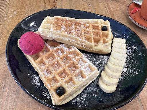 We were the first customer in the morning. But the tables and chairs were littered with bread crumbs. Seemed like they didn’t clean the place. Food was decent, service was unfriendly. Ordered waffle with red-fruit ice cream, banana, and Kinder chocolate. The waitress just said, no, no more. I asked her, no more of what? No banana, no ice cream or no waffle? She said they ran out of the Kinder chocolate spread. I asked if she could replace that with other chocolate spread they had (they had on a different item some other chocolate spread). She reluctantly agreed. We needed an additional plate and cutleries for our young kid, and had to request repeatedly.
