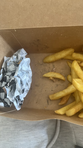 Read moreAcabei de encomendar um hambúrguer. Para além do tamanho da carne ser muito menor que o pão, não possuía muito sabor. A maionese/molho que enviaram mesmo sendo de uma cor mais avermelhada sabia a maionese normal, possivelmente maionese normal com algum tipo de tempero avermelhado que não mescla bem o sabor. O pão ao menos era bom e macio. Mas o pior é o facto de que o líquido que a carne solta (o que é normal) vazar ATRAVEZ do papel que usam para cobri-lo e com isso soltar a TINTA desse papel chegando a manchar as batatas, deixando-as basicamente tóxicas. Essas manchas pretas na foto são tinta que o papel soltou ao...