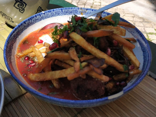 Some traditional bread was immediately ordered as we'd had a couple of drinks previously but was a great disappointment being a sort of dried focaccia, pretty much as untraditional as you can get really! The mains then turned up and were just alright. The meatballs were a little dry and the accompaniment fine and the marinated chicken was tasty but sat on top of more of that very untraditional bread. It seemed like more effort has gone into the presentation rather than producing some genuine Iranian soul food and my impression was that there was an attempt to give the food an elegant twist to match the cheaply done but attempted elegance of the decor but before you do that you have to get the basics very right.
