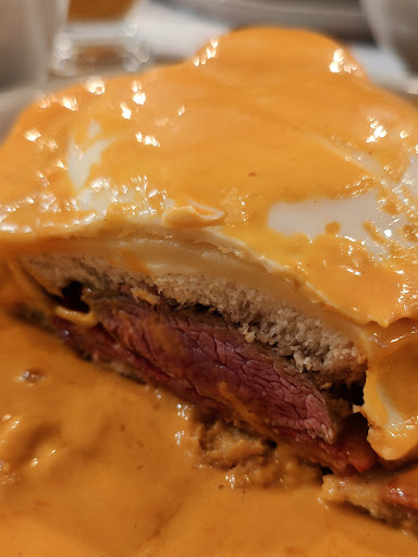 Being no Francesinha expert, i understood that their version is more akin to Braga's recipe of Francesinha rather than Porto's (the former has a more creamy, smooth texture, while the latter is heavier and tipically more spicy).