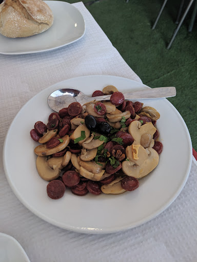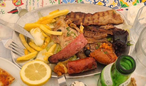 We stopped here because we were hungry after hiking up and down castle ramparts and it smelled so good outside this restaurant. It wasn't though. I don't know who was cooking what with all those seasonings, but our dishes didn't see any. The biggest problem I think is that the food was overcooked and underseasoned. Roast chicken was dry and didn't taste like much, Portuguese style steak was OK, as was the pizza, but I don't think we'd order either again. The grilled meat platter wasn't cooked so much as desiccated. We ordered cappuccinos which came out pre sweetened and with whipped cream, which is a level of bizarre you don't even see in America. I guess the waiter knew better than to ask how the food was, although other than that he was very nice and attentive. However, when we asked for the check, he wanted us to pay cash and when I asked if card was possible, eventually I was pointed inside, to the least friendly person I've encountered in Portugal. The charge was also mysteriously about €10 cheaper than the receipt we were given. So, no, I wouldn't recommend this place. Go somewhere else, enjoy a...