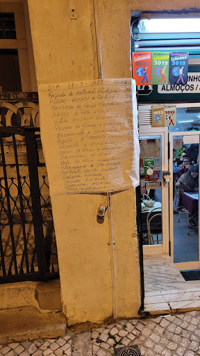 Read moreThis is the place if you want to experience the real portuguese cuisine. You'll find the menu on the street handwritten as it is in the restaurant. In the inside is very tipical, nothing funny or modern, but the furnitures are minimal and old style. They don't speak english but don't worry you will able to understand and make yourself understood. The plates are abundant and reflect the tradition on the portuguese cuisine. I went in the restaurant 3 times for dinner because it was my preferred place to eat in Lisbon. I did try massada de peixe, bacalhau a braz and salmao grelhado. Everything was good and very satisfying. Of course the dinner couldn't finish without doce de casa and a copo de porto (glass of porto). Even the bill is handwritten, old school until the end. If you are in Lisboa try it you will not be...