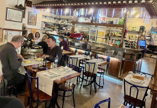 Just off A5 at the edge of Monsanto in a suburban area, this hidden shack of a cosy family restaurant serves short traditional menu with weekly daily menus, a good wine selection as to be seen on the shelves, a small in & outdoor space with hands-on service by the owners.