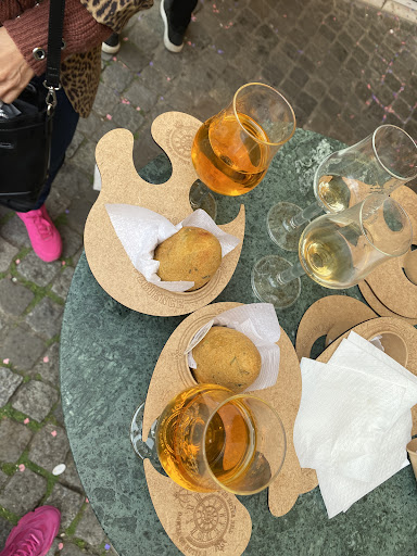 Read moreThere are several of these little places but we went to the small take-out just outside the entrance to the castle (Sao Jorge). They serve “Bolinhos de bacalhau” - otherwise known as cod fritters – and they are delicious. The ingredients are simply cod, potatoes, eggs, parsley, and olive oil. As such, they’re gluten-free and when we asked to be sure of this, we were pointed to a window where the different ingredients were tastefully displayed. They make a charming snack either before or after going into the castle. Different styles of port are also served to accompany the delicate flavour of the fritters. They’re simply served and can be eaten while you walk, or as you stand at small tables just outside the shop. They have several other locations...