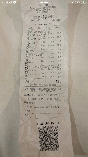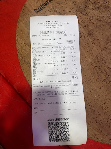 Read moreThe food was just okay, but the experience was disappointing. They clearly try to take advantage of tourists. No one informed us that everything placed on the table: bread, pate (charged separately!), olives, and other small items would be added to the bill. These items were already on the table when we sat down, with no explanation. They do not accept credit/debit cards, which feels like another way to make things difficult. I wouldnât mind paying 10 euros more if they were honest, but hiding behind the excuse of âPortuguese traditionâ is just a way to overcharge. Also, the bread was old and disgusting. Wonât be...