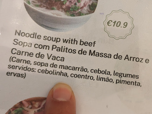 Sorry but I cannot comprehend the 5 star ratings. Probably none of them has ever been to Vietnam or eaten in a good Viet resto? The pho broth was bland and didn't contain star anis or any of the spices that should be in there, not even sure this was a proper bone broth as it didn't taste like it at all. There were no sprouts, not a single herb (usually there's even a bowl with extra herbs, but there was absolutely nothing (!). The "Pho" contained just of flanky beef pieces, half of them not eatable plus overcooked ricenoodles and some onion slices, that was all. Sorry but this is a no go. Also the other soup was nothing like shown in the menu: the vegetable (curry?) soup for 6.90 (!) was a small portion first of all and tasted well...like a cube broth with a dash of milk, 4 pieces of sliced carrot, 2 green beans and 4 pieces of tofu. If you add up the cost of that soup, it's 50 cents, at best. The Banh Mi was ok-ish but also no herbs. Very very...