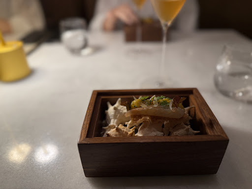 While the cuisine was undoubtedly flawless, the service, though highly polished, left a little room for refinement. The staff, while attentive and courteous, could benefit from a even more meticulous approach to detail, given this is a Michelin star restaurant. For instance, at one point, a server inadvertently touched the part of the spoon meant for consumption, a small oversight that can easily be addressed with additional training. This minor flaw, however, does not overshadow the professionalism and warmth with which they handled the overall dining experience. I’d rate the service 4.5/5, with the potential to reach perfection with just a few minor adjustments.