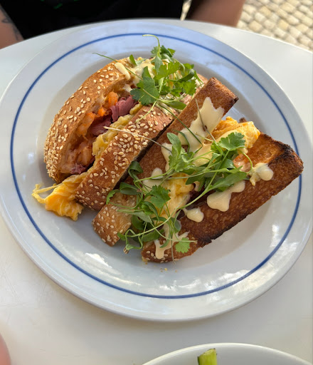 Beautiful space and the minute I stepped through the door I thought I would love it. And I still want to love it… But left with a bit of a mixed impression yesterday. Super welcoming and friendly staff. I was immediately asked where I wanted to sit. I chose upstairs and was led to a little table with a view over the cafe and in-house bakery. My waiter was a lovely guy called Simão who took my order quickly. I was drawn to the “Tornado” egg dish because it seemed to have a very interesting mix of flavours - eggs and a brioche bun stuffed with potato, broccoli, Camembert, Gouda and Sour Cream, served with their homemade coleslaw… I asked Simão if it was a good choice and he said that his favourites were some of the other dishes… Well that was good to know but I still stuck with my original choice. I also ordered an orange and carrot and ginger juice - brought up within minutes and very fresh. The tornado was brought a short while later. Amazing presentation… A large swirl of eggs, garnished with a few bits of red cabbage. I think this was the extent of the coleslaw serving and I did wonder where the rest of the ingredients were. I cut into the eggs and was surprised to find this black hard thing beneath their surface. Were the eggs served on an upside down ceramic bowl to give the dome/tornado shape? How unusual I thought! And then were the rest of the ingredients hiding under this little pot? But where was the bread? I was sure I read it was served with a brioche bun… I removed the rest of the tornado from the dark pot so I could turn it over and it was only then when I saw its edges which were not as burnt that I realised that this was not an upside down pot but the brioche bun… And sure enough, the rest of the ingredients were underneath this. I was shocked but maybe they charred the bun on purpose? Was this some sort of creative flavour concept? I cut into it, which was hard to do because it was so hard… And I tried a morsel but all I could taste was burnt bread. This couldn’t be right. I called Simão over and I asked him if the bread was burnt like this on purpose? He looked surprised and said no and he’d ask the kitchen to make it again. A few minutes later, a waitress or manager returned the plate, this time with a more lightly toasted bun and she said that they added two hash browns to say sorry. A nice gesture but was surprised to see that they just replaced the bun and didn’t “make it again”. I mean I’m all for not wasting food and the temperature was just about acceptable but it just meant that the eggs were not served as hot off the pan as you would expect. Regardless of the burnt bun situation, I found the dish quite bland… Maybe my taste buds had been affected by the charred flavour but all I could taste in the stuffing were the mashed potatoes and broccoli… Mostly potato… I couldn’t detect any cheese or sour cream… It needed more flavour. And I loved the cabbage but there wasn’t enough of it. If I were to redesign this dish, I would be more generous with the coleslaw and cheeses and maybe serve the sour cream as a sauce on the side…Perhaps add a sprinkle of chopped walnuts for texture. Just my two pence as a foodie/cook. The hash browns were much more flavoursome. I wasn’t hungry enough to try anything else so I just asked for the bill and was charged in full. Fine but if it were my restaurant, I would never have let such a badly burnt bun leave the kitchen in the first place but if one did, I certainly wouldn’t charge the customer for the experience. Or I would offer dessert and coffee on the house. Something more significant than two small hashbrowns… I am only saying this because as a customer for whom time and money are very precious, it felt disrespectful to be served burnt bread. I am sure it was not intentional but there are many choices for brunch in the area, where I’ve had nothing but flawless experiences and the flavours live up to the description on the menu. Nothing is unforgivable but next time I visit I’ll just try a coffee and pastry. Or one of the dishes that Simão kindly...