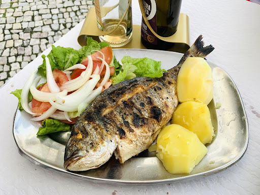 This is our favorite restaurant in Lisbon. We ordered their Douradinha grelhada na brasa (grilled fish) and Espetadas de boi grelhadas na lenha (beef skewer), and both were super delicious! The fish was grilled to perfection - slightly crispy on the outside and very juicy on the inside. The beef chunks in the skewer were surprisingly huge but still maintained the tenderness.