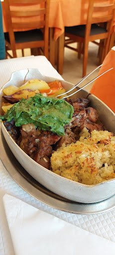 I received a recommendation about this place form my friend as the place with meat on the hot stones. So I looked forward to eat in here. Well, I was pretty satisfied with my experience but I will not come again. Place is traditional Portuguese restaurant with nice atmosphere but I don’t understand why they have no music for background. Anyway, I was sited fast and the waiter tried his best to speak English to me (unfortunately my Portuguese is not that good but I do love local food). I was surprised with appetizers - I used that olives served with olive oil, garlic and herbs. Here there were just marinated oils from the can without any spices. Well, it is fine. Oysters looked big and seemed fresh. But again - usually on kitchen they separate the oyster from the shell, but here I had a hard time to unstick the oyster and did it with normal fork. Plus fresh oysters in restaurants are around 2-3€ each, here I payed 11€ for 3, so it is over the price even in the city center. Main dish was the beef steak on grill with bacon and potato. First - I didn’t feel any smell from meat, you know, usually grilled steak smells really strong and good. There were no smell, and how I discovered - no taste. I literally asked the waiter to bring me salt and garlic, because meat had to taste at all. It was juicy and fresh, but I was surprised how plain it tasted. Well, potatoes tasted better than steak! Also potatoes were just boiled. Again, I used in other Portuguese restaurants they serve potatoes which were boiled and later baked with garlic and olive oil. These side didn’t have anything, just boiled with no spices. Potatoes itself were tasty, but I had to add oil and garlic by myself. So I was confused, that the food seemed good but wasn’t satisfying. The dessert actually was good - milk soufflé with crushed cookies. I like it. But anyway. Portuguese cuisine is very flavorful and I was surprised that this restaurant was so full of people, with decent, even but higher than average prices served food so plain. Not my best choice so far. I am glad I have tried, but don’t recommend to...