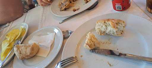 Pedimos pão e manteiga, juntamente com 2 croquetes de leitão de entradas, chegaram os croquetes, um deles continha um pedaço de plástico de 2 fios com aproximadamente 3cm de comprimento, isto quando foi dada a última garfada, foi informado ao empregado, o mesmo reagiu de forma despreocupada e antes de se remover da mesa lá disse " peço desculpa " quase por obrigação. Nada de tentar compensar a situação e trazer outro! O restante das entradas nunca chegaram. Pedimos 3 doses de leitão para 3 pessoas e meia (eu iria apenas petiscar porque não sou fã de leitão), veio sensivelmente 6 pedaços pequenos (alguns quase apenas a pele) por dose. Recomendo para quem quer passar fome. Sendo o valor de 24,50€ por cada 1 dose e mal alimenta 1 pessoa. Nem tudo é mau, por parte de quem comeu o leitão disse que era bom. Mas nada de outro mundo. Nada que se compare á Bairrada ou Negrais. Pelo valor absurdo que cobram. Sobre bebidas, a carta apenas apresenta bebidas alcolicas sendo que o que tem sem álcool, só perguntando e têm apenas coca-cola, ice tea de limão e san pelegrin (água com gás). Pedi a minha coca-cola natural, veio fresca com gelo e limão. Devido a não ser fã de leitão e quem ia comer ter ficado desiludido com a quantidade de comida, preferi nem experimentar e pedir outra coisa para mim, sendo que a carta não tem quase opções para além de leitão somente vitela, cabidela e bacalhau. (Dos quais nenhum me agrada) dei por mim obrigada a pedir o queijo amanteigado das entradas (9€) o mesmo chegou sem pão sem tostas sem nada e FRIO, um queijo amanteigado FRIO, parecia queijo curado. Só para passar a faca para abrir a tampinha para poder retirar o queijo para barrar a faca escorregou. Pedi pão, veio uma 1 bola, claramente aquecido no microondas que mal se podia segurar no pão. Então para o abrir... nem com faca. O pão teria pelo menos 3 dias... duro duro que nem... quase se partia um dente a comer aquilo. Dava para bater com ele na mesa e no prato como se fosse pedra. Vergonhoso. Simplesmente vergonhoso. Dado a refeição como terminada pedimos a conta. Após isso ainda nos foi questionado se não queríamos café ou sobremesa, ao qual respondemos NOVAMENTE, apenas a conta. A mesma chegou, contabilizando o famoso croquete acompanhado de plástico. Fizemos questão de mencionar isso juntamente com todas as outras coisas que foram desagradáveis na refeição. A qual a resposta foi "acontece" "podia ter dito" "podíamos ter trocado o "pão, queijo"" pergunto-me para quê? Para vir outro pão igual? Como observei na mesa do lado o mesmo dilema. Aclamaram que o queijo estava a "temperatura ambiente" enquanto CLARAMENTE não estáva... custa assim tanto assumir os erros e tentar compensar de alguma forma por eles? Talvez não cobrar o que vêm para a mesa sem condições? Seria assim tão fora do normal? Mas não. Foi tudo cobrado, encararam com a cara "do sim tá bem" com ar presunçoso e no fim "voltem cá para uma segunda vez" ou algo semelhante. A qual nem respondemos e fomos embora sem nos despedirmos. Claramente não iremos voltar. Melhorem. Após uma rápida vista de olhos nas reviews vê-se que não somos os únicos a queixarmo-nos destas situações. E se for para responder que respondam como deve ser, o feedback irá alastrar-se rapidamente. Ps. -5 estrelas pela tentativa falhada de decoração de interiores enquanto "rústico", é só uma falta de gosto cada mesa e cada cadeira ser diferente, desde coisas com 80 anos, coisas "normais de se ver" e claramente restos do café que antes lá se localizava. Muito mau aspecto, acompanha o registo da parede com rasto de algo derramado que ninguém se deu ao trabalho de limpar. Sem problema a mancha até era pequena e não tava à vista. Só mesmo diretamente ao lado da mesa, por baixo do espelho, a nível dos pratos, mancha castanha numa parede branca com pelo menos uns 30cm por 30cm. LINDO. BRAVO. Acho que grita mesmo o serviço que entregam! Vai de acordo com os preços que praticam!...
