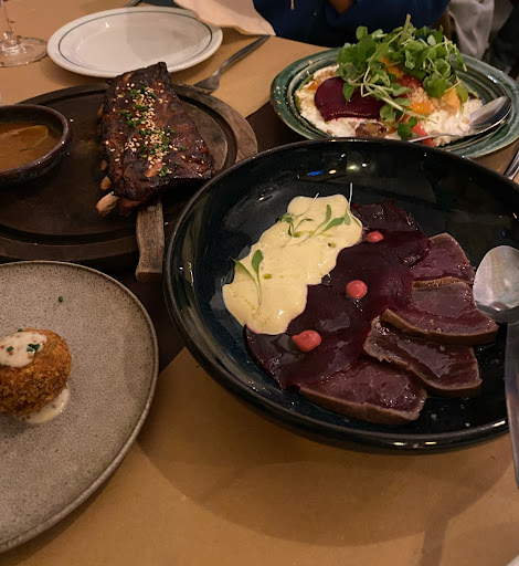 First and foremost, the restaurant is extremely overpriced for what it offers. A prime example is the Tuna Tataki, which consists of four tiny pieces of tuna accompanied by five paper-thin beetroot slices, all for an eye-watering âŹ17. This theme of inflated prices paired with minuscule portions repeats itself with nearly every dish on the menu.
