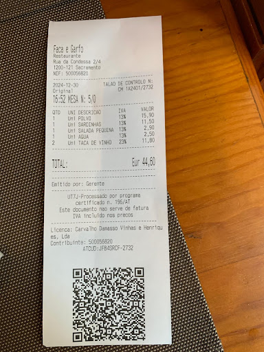 Seen the bill, they tried to include, bread at 3 euros which could have been sitting there all day as it was there before we sat down, tried to charge for the butter which we also didn't use. We said we are not paying for these and they quickly rubbed it off. €2.50 for a tiny water bottle, even expensive places in Lisbon charged a maximum €1.50.