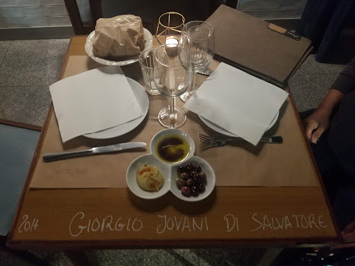 Unfortunately as always the rip-off starter they place on the table as a "welcome". In this case it is olives, oil and Hummus with bread for 9,50€. At least in this restaurant it might be worth it.