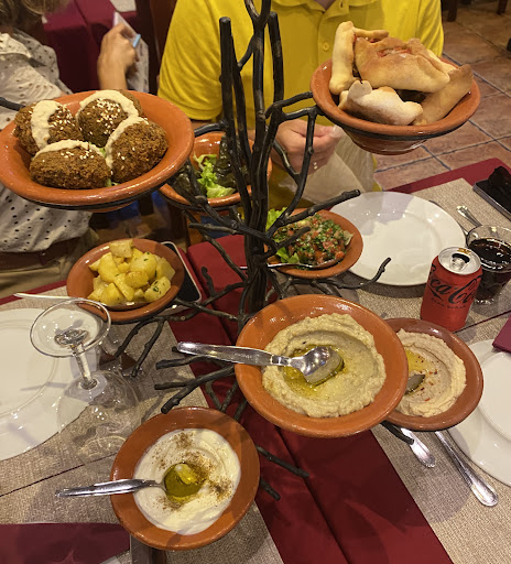 The food was great! We had a Tabbouleh, Hoummos, Oriental Salad, Falafel and Pita bread for entrĂ© (around 10âŹ). As main course we both shared an sliced duck with arab rice, eggplant, almonds and raisins (around 11âŹ), and a great De La Deu Alvarinho Wine (16âŹ). All chosen with the help of our attentive waiter that even offered us a glass of a especially juice on the house.