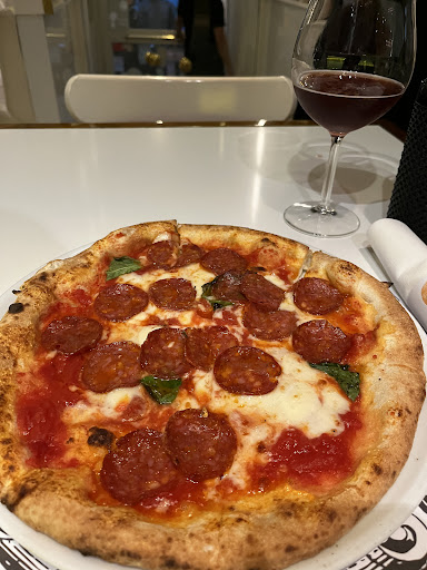 I asked for the Diavola and although the place was packed, they served it very fast. The pizza was truly amazing, you could the taste the sweetness of the San Marzano tomatoes, the smooth Fior di Latte cheese and fresh basil. The only thing I would make different is let the pizza touch a bit more the bottom of the oven as it didn't create the famous leoparding on the bottom, I noticed the pizzaiolos were always "showing" the pizzas to the flames which cooks evenely and fast but it means picking up the pizza and not charring the bottom.