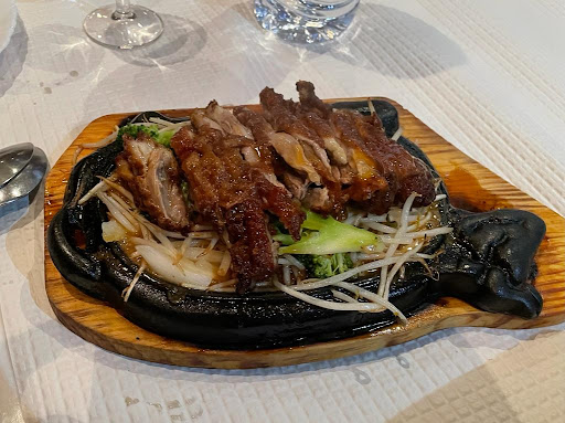 Excellent choice for an affordable and tasty dinner! The broccoli dish that others have posted photos of here was delicious, very garlicy and crunchy. We also had the hot iron plate duck (see picture). Both the price and the food were very good, and the restaurant looks very nice on the inside. The waiter spoke excellent English, so it was easy to communicate. The place seems popular with chinese people who live in the neighborhood and with chinese tourists who arrive by bus on their lisboa trip....