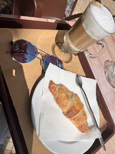 Run away from this place! Typical place to rip off tourists. We went for breakfast because we were staying at a hotel nearby. There wasn't much of a queue and we thought it would be quick. They have a breakfast menu for 3.20 euros that includes a sandwich, coffee and juice. We thought it was a good option. When they attended us they told us that this menu was not available and that we had to order things separately. Seeing the price of the sandwiches separately, 4.50 euros, we ended up ordering a muffin and a croissant from the day before. Two juices in a plastic cup, two coffees with milk, a muffin and a croissant, all for 13 euros!!! In addition, the place was full of trays from other customers and since they had the door open, the pigeons entered to look for food among the leftovers. Don't be fooled, in Lisbon there are many places where you can have good coffee and a pastel de nata for a euro or...