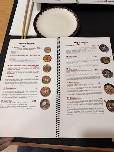 Read moreMenu had extensive list of different kinds of ramens (speciality, vegetarian, etc), appetizers/starters, and rice bowls. They had different kinds of Japanese beer as well as soda, lemonade, water, and tea. I highly recommend the jasmine tea! They have spicy oil for your ramen which was a nice touch. There is not a lot of seating, so if making dinner plans, I recommend a reservation. Seating is very close together with other tables too. They also speak more English than Portuguese, so very tourist friendly in that regard. Menu is also in English and Portuguese. We really enjoyed the ramen and felt it was very authentic tasting, along with the drinks. However, be aware they bring the check when you’re done eating. We wanted to order the mochi for dessert but our check was already brought out to us.