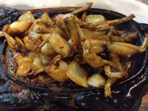 We started with Chinese crepes - aka egg rolls. But these weren't your standard American-Chinese egg roll. They were a little wider & flatter. Truly more like a fried crepe. The standard filling of veggies provided a nice starter to our meal. For my main dish I went with the lo mein & my husband ordered the frog's legs. The lo mein was good, but nothing special. Hubby loved the frog's legs. I tried a bite (and yes, 'tastes like chicken' is applicable here) but just couldn't bring myself to eat a whole one. The fact that they actually still looked like frog's legs was not...