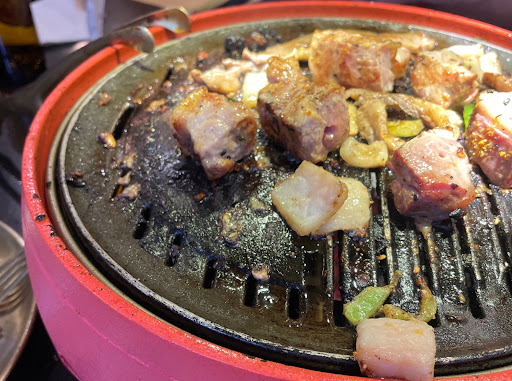 Read moreI really wanted to like this restaurant, but by the end of my lunch, I was frustrated, hungry and eager to leave. Firstly, let's get the positives out of the way: the decor was cute and the servers (when serving you) were helpful and nice. Now the problems I had: the food was just okay. The meats were mostly tasteless, even the ones that arrived seasoned. One thing to note: you do not choose the food you want to arrive first. The all you can eat menu functions like a brazilian restaurant, where the food keeps coming and you choose which ones you want. That is, if you even get to choose between all the meats. During the first 30 minutes, I was being served mostly the same cuts of meat. After roughly 45 minutes of being served, I wasn't being served at all. The coals were getting cold, I spent 30 minutes with the same meat trying to cook. After another hour, only two more pieces of meat arrived after many requests to the servers. I spent almost 1h30m with only 3 pieces of meat arriving. The service was extremely slow and the restaurant was almost empty. I would have been better served going next door to the asian market, would not leave hungry and would pay half what I payed here. Avoid this kbbq...