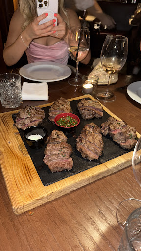 I came there to eat a wagyu skirt steak (54âŹ), after searching for it in Germany for a long time. The waitress brought us the steaks and named them. After she called my âwagyu skirt steakâ VAZIA (29âŹ) which is a basic sirloin steak and looks, tastes and has a completely different texture and quality than the steak I ordered. I believe that they didnât expect that Iâm a steak connoisseur and just wanted to get more money for less quality. Of course I saw the difference immediately, so I asked again after I donât understood what she called the steak to get sure that there isnât a mistake. So I asked her if my steak is the skirt steak and she answered me with a clear YES. I tried it and of course my suspicion turned out right, so I asked another waitress if she could tell me what steak this is and she told me that it is a sirloin steak. I told her that I ordered a wagyu skirt steak. She apologized for that and said that she will bring me the right one. Because my friend and I wanted to eat together, she asked for get a new steak as well so we can eat together. I expect that it should be clear that it just make sense to eat together and get the food at the same time when youâre going out for eating. But unfortunately two waitresses wanted to tell us that we should just share the steak of my friend (rib eye) until we are waiting for my skirt steak and after that we could share my skirt steak too. As a waitress in a restaurant which is called âknowledge of beefâ I expect the waitresses have a bit of knowledge about beef and can tell and see the difference of a sirloin and a skirt steak. My skirt steak wasnât medium like I ordered it just was medium well/ well done. And full of tendons. After all they just charged me 38⏠instead of 54⏠for the skirt steak, but unfortunately I couldnât enjoy my...