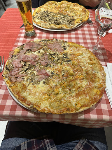 The food is kind of okay but not so good, the service however, is one of the worst I've seen recently. First the waiters literally took a total of about an hour or so, not exaggerating a single minute. Then, the waiters are quite distracted and speak a very rough Portuguese, with you needing to repeat things over and over again and them forgetting what you ordered. Took us about 3 attempts to either ask for the menu or even the bill, waiting of course another 30 minutes. Don't expect fast drinks or even a good dessert, waited 20 minutes for bland desserts that tasted like quickly defrosted cakes with an artificial flavor. Next, the price turned out to be way too expensive for what we were offered, we spent about 2 hours on a restaurent in which half of that time was wasted and a total bill of a hefty 85 Euros for 5 normal sized pizzas. Also, they give you the surprise of this being a smokers area restaurant apparently. People can smoke here freely which is quite inconvenient. Decoration wise its weird, mixing modern with old but whatever, everyone has their own taste so I can't really criticize that freely. I wouldn't recommend it for anyone, there are restaurants that are 10 times better, cheaper and even cleaner, after finding a nice pizza crust and leftovers laying on the floor from previous people. Lastly, about 2 tables near us could be heard complaining about the plethora of problems from...