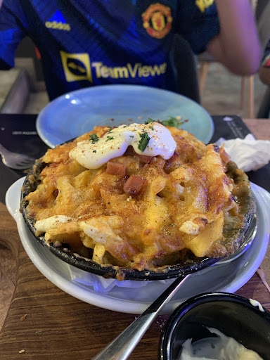 This cozy little place had the best tapas we have eaten during our stay. The atmosphere was very fun and chill. We had a bottle of Vino Verde and the 5 tapas we had were delicious ( Garlic Prawns, 2x chicken skewers, bread and Nachos). We only paid €55 for our dinner and drinks which is really cheap for what we got in return. When we return, we will definitely return here for a lovely dinner. The staff and server are all super friendly and are working very hard to please every customer. We had a table on the inside with wiew of the bar and Bartender and was fun to watch him constantly make cocktails with a passion. When dining with a large group be sure to make reservation or else you might have to wait a while, since seatings are limtited. But oh...