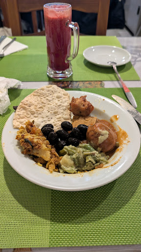 We had a very good dinner at this restaurant. The owners have started a novel vegan restaurant after working for a vegan establishment. Since the owners are originally from of India, the cuisine reflects Indian cuisine which makes the food much better (at least for those who know their food ;-) ) than the standard veggie burgers/bowls, etc. Customers choose items from a buffet and a server transfers their choice to a plate. This insures extra level of hygiene at this restaurant. However, this may be unnecessary as I visited daTerra in Porto a few days later and customers were allowed to serve themselves in this much larger restaurant.