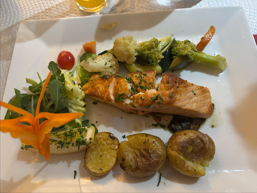 A rather unassuming entrance hides a lovely hidden gem within. We were there as part of a ~40 person group and the experience was superb. Moving past the long waits between ordering and different courses, I started off with a glass of fresh orange juice, this was perfect and clearly freshly pressed 10/10. I had the garlic bread for starter which was delicious fresh bread with garlic and olive oil, with some salad and carrot art 9/10. For the main course I had a salmon fillet, it was slightly dry in the centre but overall very nice, the potatoes were exceptional, and the cooked veg was delicious, more carrot art and some salad which I left uneaten 9/10 - only held back by the salad and that the salmon wasnât perfect. For dessert I had a chocolate fountain as they ran out of the chocolate Lisbonita cake which was a massive shame, however we were at the end of the night at this point. The chocolate fountain was okay, nice gooey chocolate centre and the outside was light and spongey but a little dry. The ice cream accompanying was delicious, the chocolate sauce and cocoa powder less so, 7/10. The service was lovely, they were very cheery and helpful and a pleasure. The price was very reasonable and definitely worth it for the food. Overall I would rate the experience 9/10, very excellent but not perfect, and I would certainly...