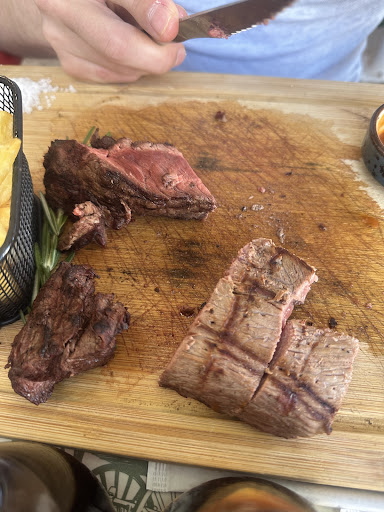 Me and partner did order the SAME meat, and got 2 differents type of meat…. (One was good and the other one very bad). It was served almost cold, i told them that and they warmed up the meat but still not super hot… We honestly gave the feed back to the waitress in face to face, we didnt get any answers about the meat…. I told them that I wanted them to do something for the bill, they couldnt because apparently « the manager was on day off ». The waitress was super kind and nice towards us. But the management and the business model of this restaurant is very POOR….. We paid 23€ per meat to have a quality super super low…. And not Even the same meats while we did order the same…..
