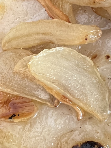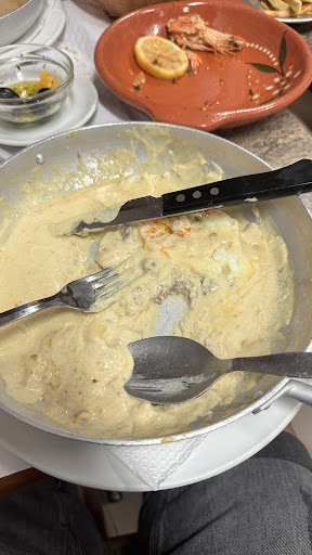 We started with the crunchy shrimp which was delicious and my husband had the razor clams which came in a rich garlic-based broth that he ate with a spoon after eating the clams. Went well with the crust Portuguese bread!