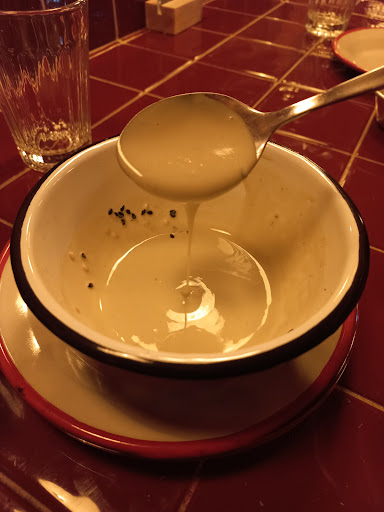 What a nice and kind place in an alley next to the main road between Rato and Prinçipe Real, Rua da Escola Politécnica. Joana at the counter is open hearted and makes you feel good from the very beginning. Beverage and food is well prepared and served and it’s a great tasteful experience to try the different sorts of dumplings. We went for cold tea and dumplings with pork, veal, chicken and shrimps. It‘s strongly recommended to give a shot to the different homemade sauces. Along the classic dumpling sauce, which is included with every offer, we had sweet sour and hot chili. Before the main course we tried the crisp cabbage salad, made with only fresh veggies, sesame and peanuts and served finished with a tasty dressing. As good as the all that above told has been, the pinnacle came with dessert. Mousse da Matcha was a complete new experience to us and this creation is nothing less than great. It’s topped with homemade croquant and it’s hard to withstand the drive to pick the rest from the bowl by tongue. Madame Bō ist in business since less than a year only and started with delivery only. Since May this year there is the little restaurant which offers twelve places for indoor dining. Of course, you can get all things from the menu for take away, if you like. Thanks for this experience and take it as a promise: this wasn’t surely not the last time we payed...