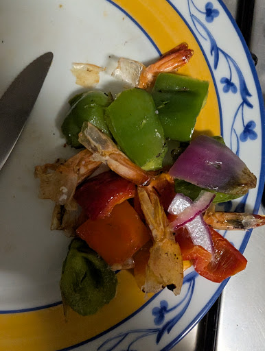 Pedi um Brás de Camarão e Espargos Selvagens, não vi nem espargos nem nenhum camarão, nem sequer miolo de camarão, apenas parecia ser batata palha com ovo e três azeitonas, eu já pedi este prato várias vezes e foi a primeira vez que me deparei com esta situação. Pedi também Espetadas do Polvo e Camarão embora tivesse uma quantidade reduzida, ideal para quem está a tentar fazer dieta, estava saboroso. Os peixinhos da horta estavam frios e murchos. Foi a ultima vez que comprei no local, porque era um dia de aniversário e não queríamos arriscar, acabámos o dia com dor de barriga na...
