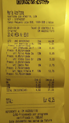 What a way to destroy a great reputation. We have been several times to the Amadora restaurant and the food and service were very good. Here in Campo Pequeno the service was a disaster, not only for our table but also 5 surrounding tables. Missing dishes, wrong orders, mains before appetizers, a rude waiter, the whole set.