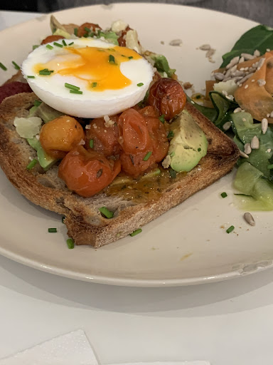 Read moreThis place has a lot of promise as their menu does look really lovely and it's a cute area in general, but they just need to work on management of a few things. Service took a really long time with everything, even getting us our menus at the start. It wasn't so busy that it was understandable; I honestly don't know what some of the staff were doing. We waited 40 minutes before we had anything we ordered placed in front of us. Even when my partner got his pancakes, we had to ask ourselves for cutlery after waiting a few minutes for them. I got my food a short while after: avocado toast. I asked the waiter what it was served with and he said, eggs, cucumber and tomato. What I actually got was barely toasted bread with very bland purée avocado, one thin slice of cucumber, one cherry tomato and a crumble of boiled egg. We didn't even have salt or pepper to add. I don't think I would've eaten it if I wasn't as hungry as I was. My partner said his pancakes were lovely however. The lights in the place kept switching off every 10 minutes or so as well.