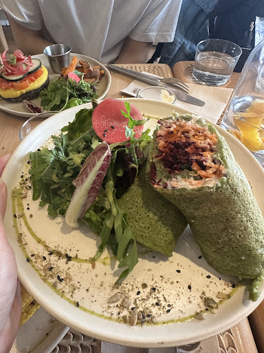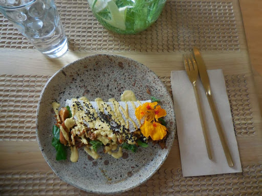 Finally, the Mung Bean Wrap was a marvel of taste and texture. The raw carrots and beetroot brought a delightful crunch, balanced by the creamy richness of cashew mayo, all wrapped in a soft mung bean dough. It was yet another gluten-free wonder that left me feeling both satisfied and energized.