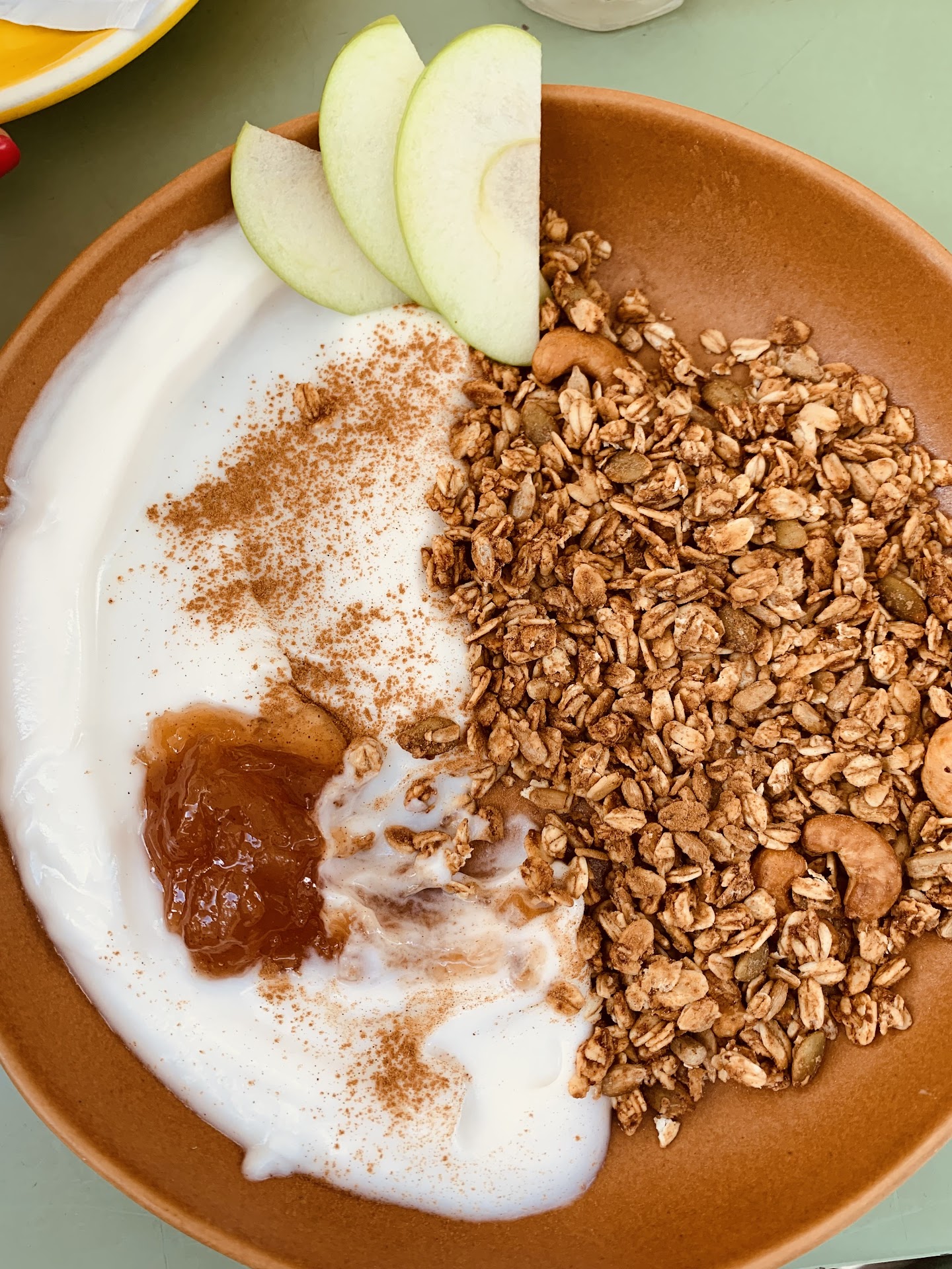 Breakfast: The vegan brunch was delicious and it was the perfect amount. It included hot drink, OJ, Coconut yoghurt with home made apple/cinnamon jam and granola and a bread with hummus, spinach and mushrooms. All very tasty! Total price 16€, which is great compared to quality and quantity.
