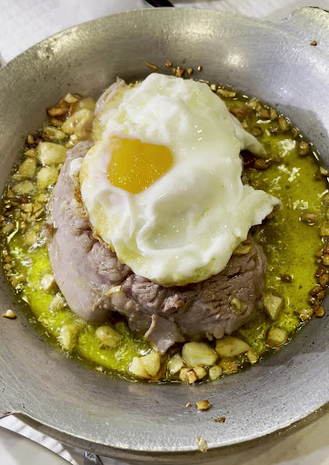 However, their bitoque served on a hot plate with sizzling hot garlic in oil is excellent. Cooked precisely to your liking, it is soft and juicy. Paired with fries and the house red wine it is a true, authentic indulgence that is...