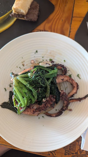 After chatting with the lovely waiter and the chef, who creates a pleasant and relaxed atmosphere with her presence among the guests, I ordered the Lagareiro octopus and a glass of wine.