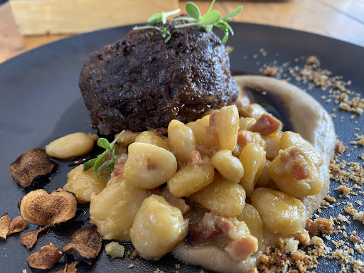 It is unfortunate that this member of staff made the initial experience at the restaurant so unwelcoming as everything else was great. I loved the floor tiling and the luxurious touches of gold throughout the interior dining area. For starters we had the bread and duck pate which was good. The oxtail with the pear purée was exactly what I didn’t know that I needed. All the other reviews singing it’s praises were spot on.