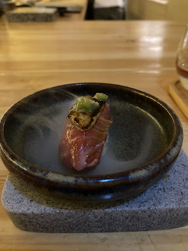 Read moreIn this kind of omasake restaurant, the food is the star, and here, it indeed is. Every dish is beautifully crafted and delicious, there is no doubt about it. However, in this kind of restaurant, we are also expecting an entire holistic dining experience, beside tasting good food. Although the chef did explain what each dish was made up of, he did not explain the why or the culture and history that made the dish. The sensation of feeling the food along with its background is missing here. We have both been to Japan but last night, the experience of 'traveling to Japan' with each mouthful of taste was, unfortunately, missing. So, in this manner, not all senses are exploited. The 3 pairing sake are delicious. But how is it pairing when no one explained which to go with what and what the sake are? One final comment, although minor, but could elevate the experience, there should be more lights to the chef preparation area. It was too dark on the table/counter to see the preparation and the served food. I have to put each dish under the counter where there is light to be able to admire them before putting into my mouth. Sight is part of the 5 senses of tasting, is also on the weaker side here due to lack of adequate light on the food. Overall, it is a good experience, but...