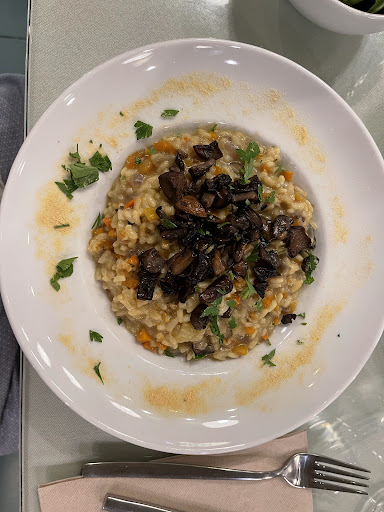 Food* This place earned a very RARE 5 stars from us for its food! The Rice bread is recommended and wow is it delicious!! We ordered the Risotto and the Veggie Chili. The veggie chili was a knockout, home run, and all the sides complimented it so wellâthe apples with the delicious sauce and cashews, the fresh side salad with balsamic and pomegranate and delicious rice. The Risotto was great (not as amazing as the chili) but tasted wonderful and was garnished w/ nutritional yeast and had portobello mushrooms. We got every food group in this dinner! We also got a Pina Colada that was so delicious and so fresh!