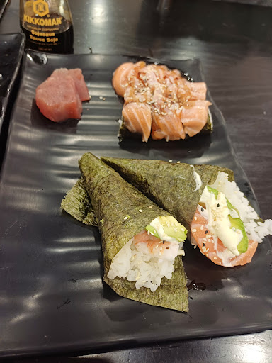 Specializes in (Fusion) Sushi and Teppanyaki; Also has some other Dishes (like Gyoza) with a Few of Chinese Origin/inspiration. Salmon (and Braised/"Flambée" Salmon) Sashimi (and Nigiri) are VERY Fresh and Tasty. Tuna (Sashimi and/or Nigiri) "Freshness" can Vary Wildly though – sometimes it is Very Fresh and Tasty, and other times it has a "Sandy"/Grainy Texture and is Not Savoury at all; Miso (Omiso) soup also "exists" (but I don't find the one from here that good - might depend on each Person's Taste); Drinks, even Green Tea or iced-Tea, are somewhat Expensive, in contrast to the Price for a "All You can Eat" Lunch – and this doesn't include refills, BTW.