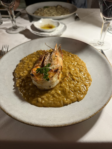The food is out of this world. We ordered the bread to start which came with tomato, basil pesto and mozzarella. You will never taste such fresh ingredients! We shared the scallops which were cooked to perfection and adorned in a delicious sauce. I had the prawn risotto for main course which was both comforting and full of flavour. Everything delicious — the wine too!!