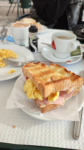 Read moreDisfrutamos de un rico desayuno en este pequeño bar cerca del panteón. Justo tenemos el apartamento al lado y la casera nos lo recomendó, así que fuimos un día a probar. Los precios son muy buenos y la comida estaba muy rica. Pedimos unas tostadas de queijo y frango, y otras solo de frango y no costaban apenas 3€. Lo que si nos costo fueron 2 ovos revueltos solos, nos cobraron 3€ por cada uno de ellos cuando las tostadas con ovo valían 3€.. fallo mío por no preguntar el precio. Si no fuera por esto los precios hubieran estado geniales y apropiados a la comida. El sándwich estaba espectacular y no...