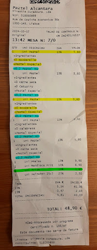 Para tanto, olhei com muita atenção a conta (confusa) do restaurante, e encontrei falhas preocupantes. Infelizmente não li todos os pormenores da conta no dia, porque estava com amigos, e resolvi confiar no restaurante.