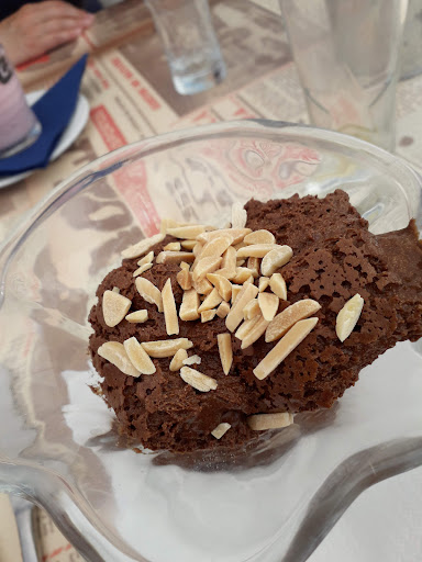 The basic tables and chairs and the overall setting on a terrace up by the sports stadium belies the quality of the food which was cheap and excellent. The service was friendly and attentive, and we had a whole cambert to share as a starter, which had a good dressing. I had delicious cubes of fresh tuna in a soya based sauce, my partner had spicy shrimps with mango and tacos. A variation on apple crumble and coffee rounded things off. Oh, and the white wine by the glass wasn't bad either. All for €40 for...