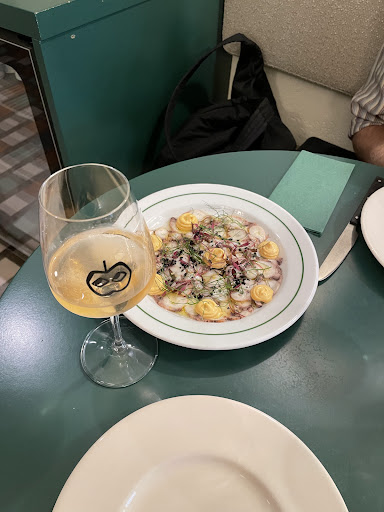Read moreI really wanted to give this place a good review, but I’m afraid I can’t - but I hope the staff take this as feedback because I would love to come back and be more impressed. First of all the people were nice, I like the space and the vibe, and most of the food was delicious. We got the chicken lollipops which were amazing and the octopus carpaccio and croquettes were great too. Sadly, the fried calamari was bad. It was very tough and was only a bit warm when it came, which makes me think it was over cooked and maybe sat around for a bit before getting served, which was odd because it came very quickly after ordering. Another thing I didn’t love is that we got four small plates to share between the two of us and they gave us all the plates at the same time, which some might like but I didn’t. The table was packed and some food was getting cold by the end of it because we had too much to eat at a single time. I think the server should bring maybe two at a time and try to pair them nicely, as is pretty common at these types of sharing restaurants. Finally, just an odd occurrence which I hope is not very common, but part way through the meal one of the staff came out from the kitchen (with a plate of food that was not on the menu) and sat down and ate at the table next to us. I was a bit confused because I’d never seen that happen before. Especially since it was 8pm, prime dinner time, and the place was full. I could see people getting turned away at the door, who I imagine would’ve been upset if they knew that a staff member was occupying a table (and eating food not available to the customers). I’m no stickler for tradition or professionalism, but it did make me feel like they maybe don’t treat the customers like they should. I hope that was just a one time thing though. Like I said, I loved most of the food and liked the place and the people, so I mean no disrespect, and I would love to come back some day...